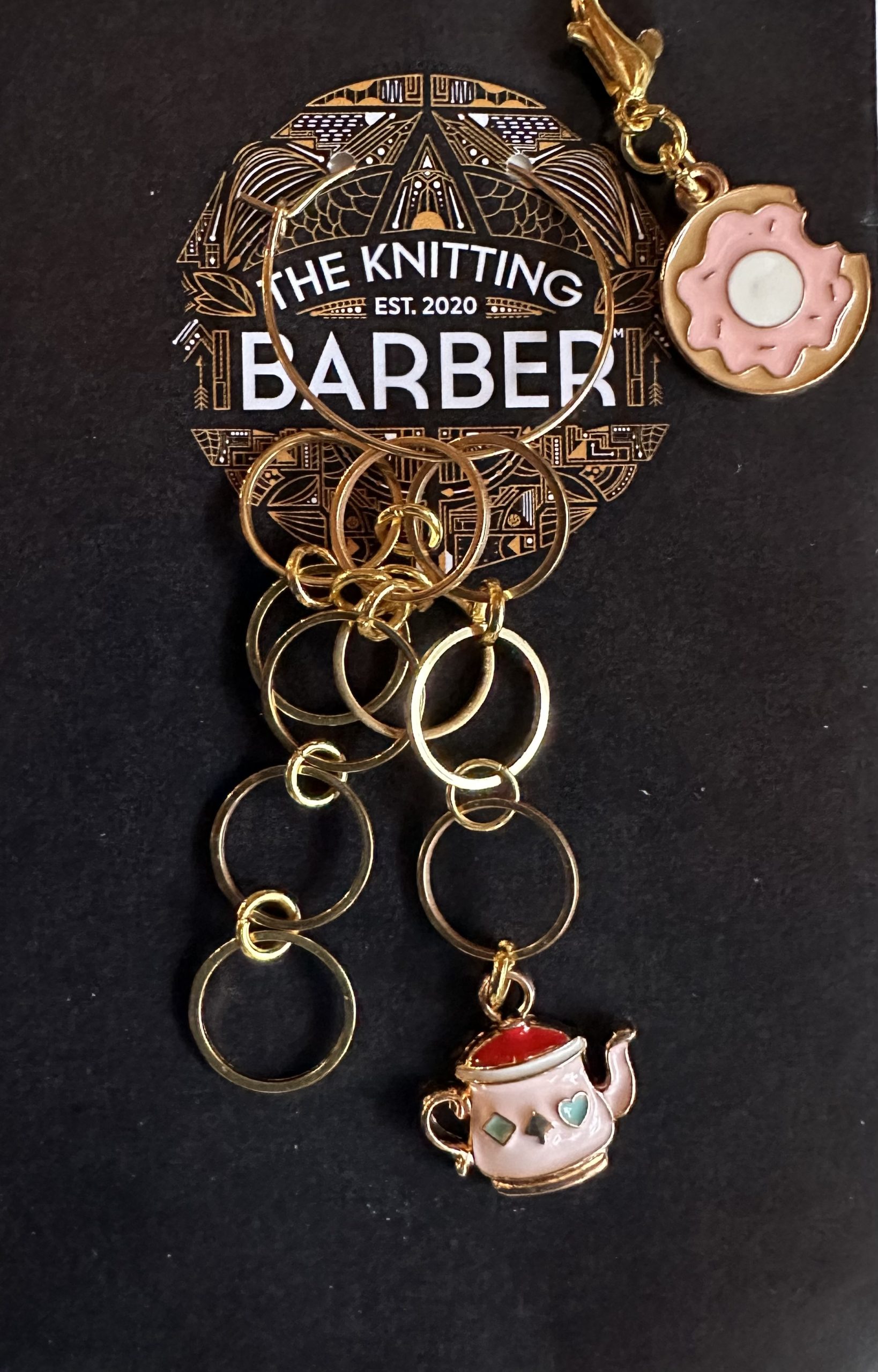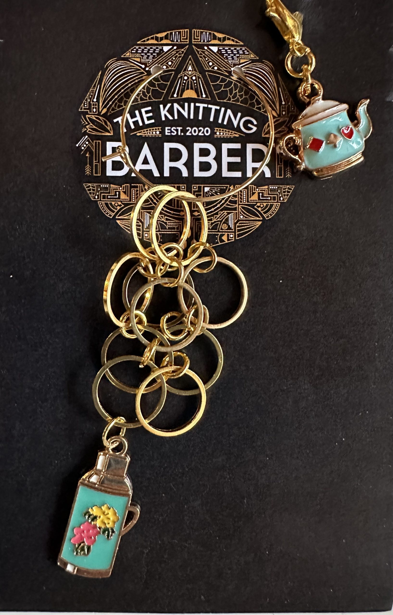 The Knitting Barbers varvräknare som finns i olika variationer. Enkel att använda för att hålla reda på varven, dessutom så vacker!